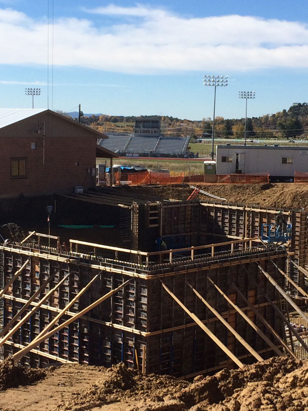 a) The construction of a below grade 500,000 gallon, water-tight concrete clearwell that required over 1,300 yd3 of concrete and 175 tons of rebar. Given the size and complexity of the concrete scope, the structure was formed and poured in various sections over four months.
